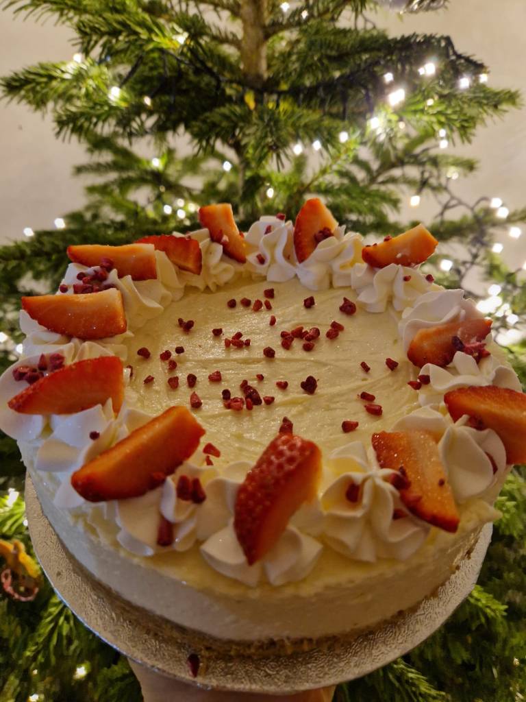 Cheesecake medley: White choc and strawberry; Biscoff; Kinder!